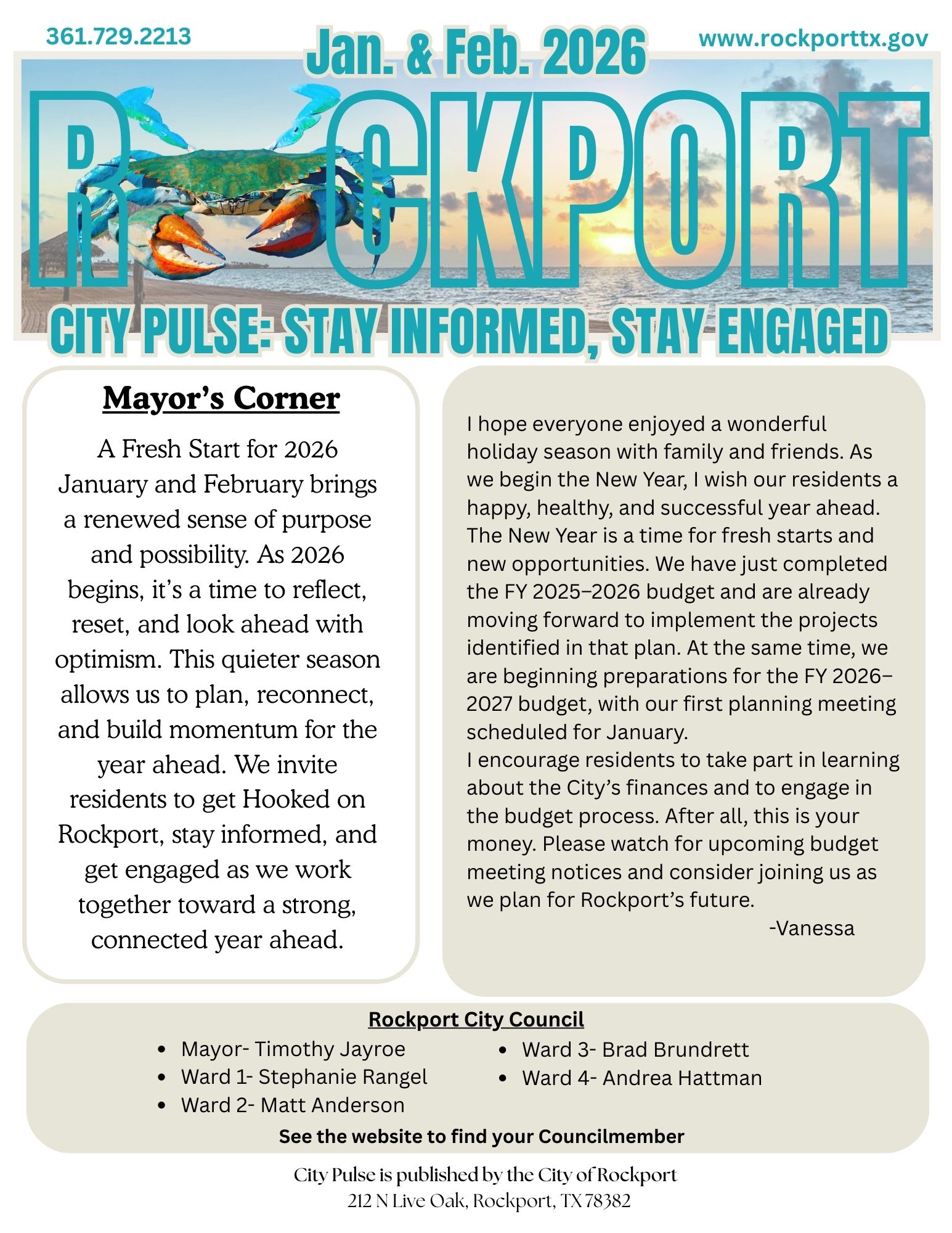 The City of Rockport is committed to providing residents with transparent and timely communications. For any inquiries, please contact us at Communications.